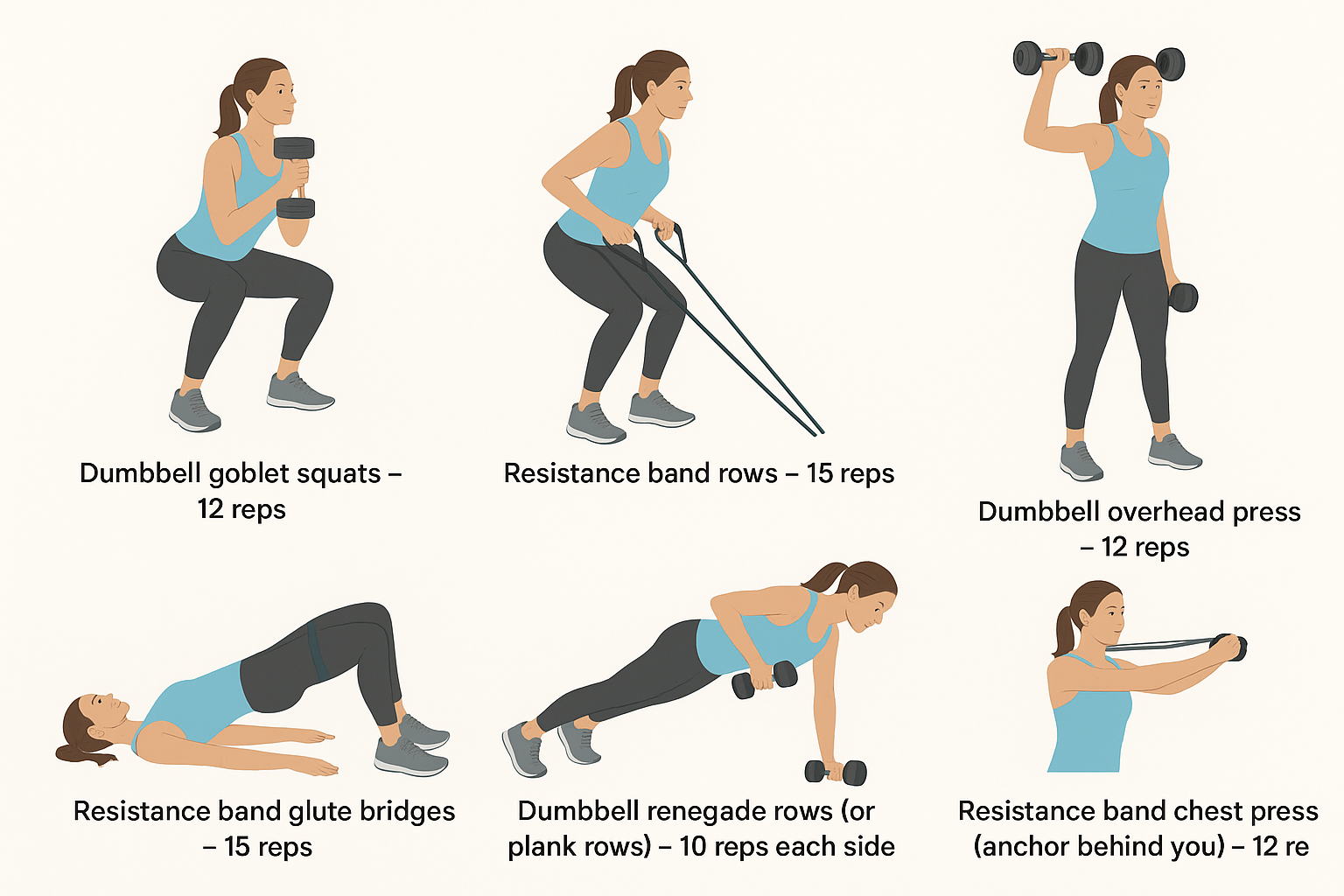 - For resistance bands, pick a tension level that still allows good form.